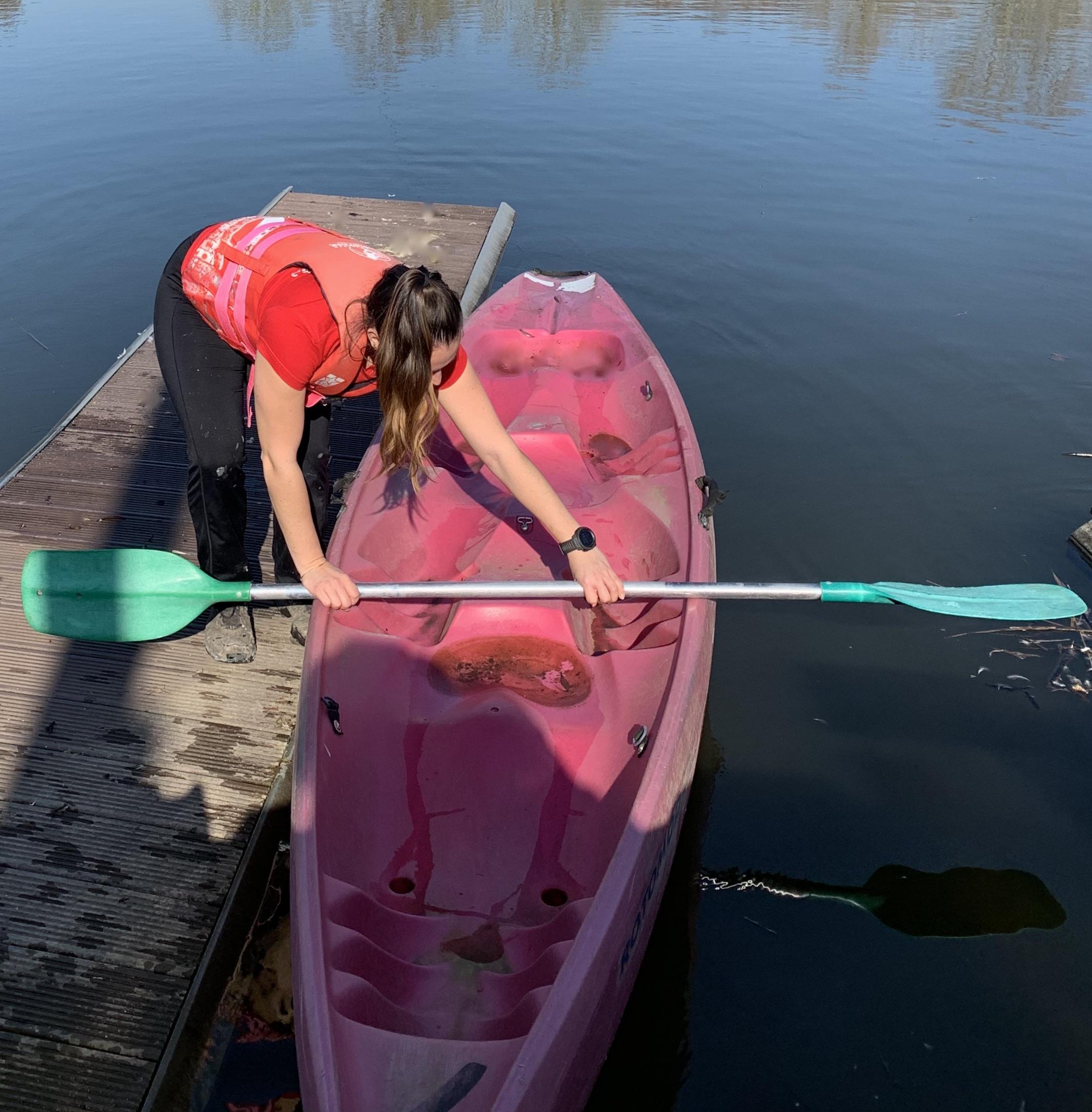 To get into the kayak or canoe, first place the boat in the water parallel to the shore. Then place the paddle at right angles to the front of the boat and the bank. At the next stage, squat down next to the opening of the kayak/canoe and, with one hand, hold the kayak/canoe seat and the paddle and, with the other, just the paddle. This way, you can step into the boat easily. Finally, hold the paddle with two hands in the correct manner as explained above.
