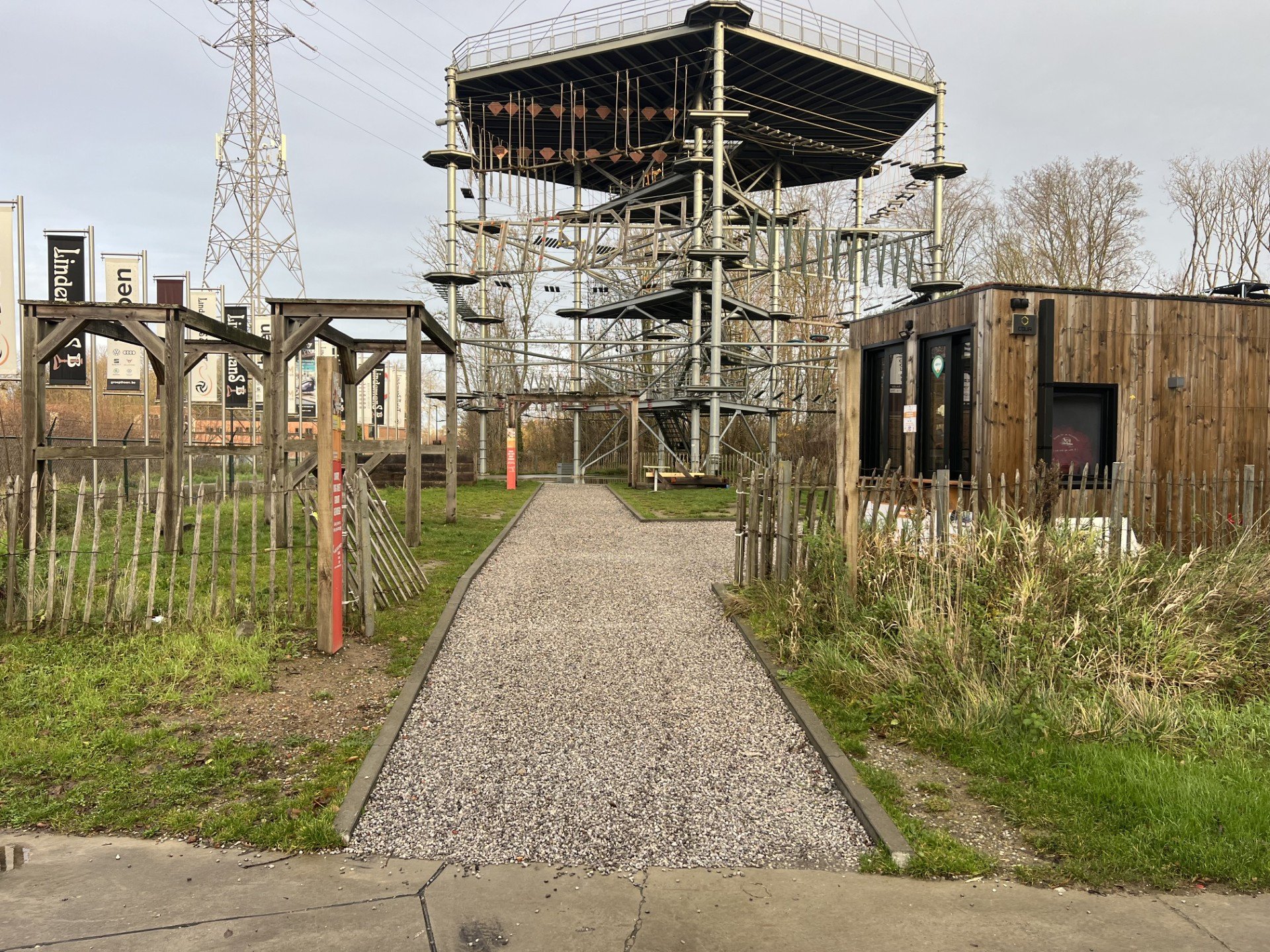 Über den Schotterweg können Sie bis unter unsere Seilbahn „Blue Diamond“ fahren, die über einen Betonfundament verfügt. Von hier aus hieven wir alle auf die erste Ebene des Kletterparcours und das Abenteuer kann beginnen.