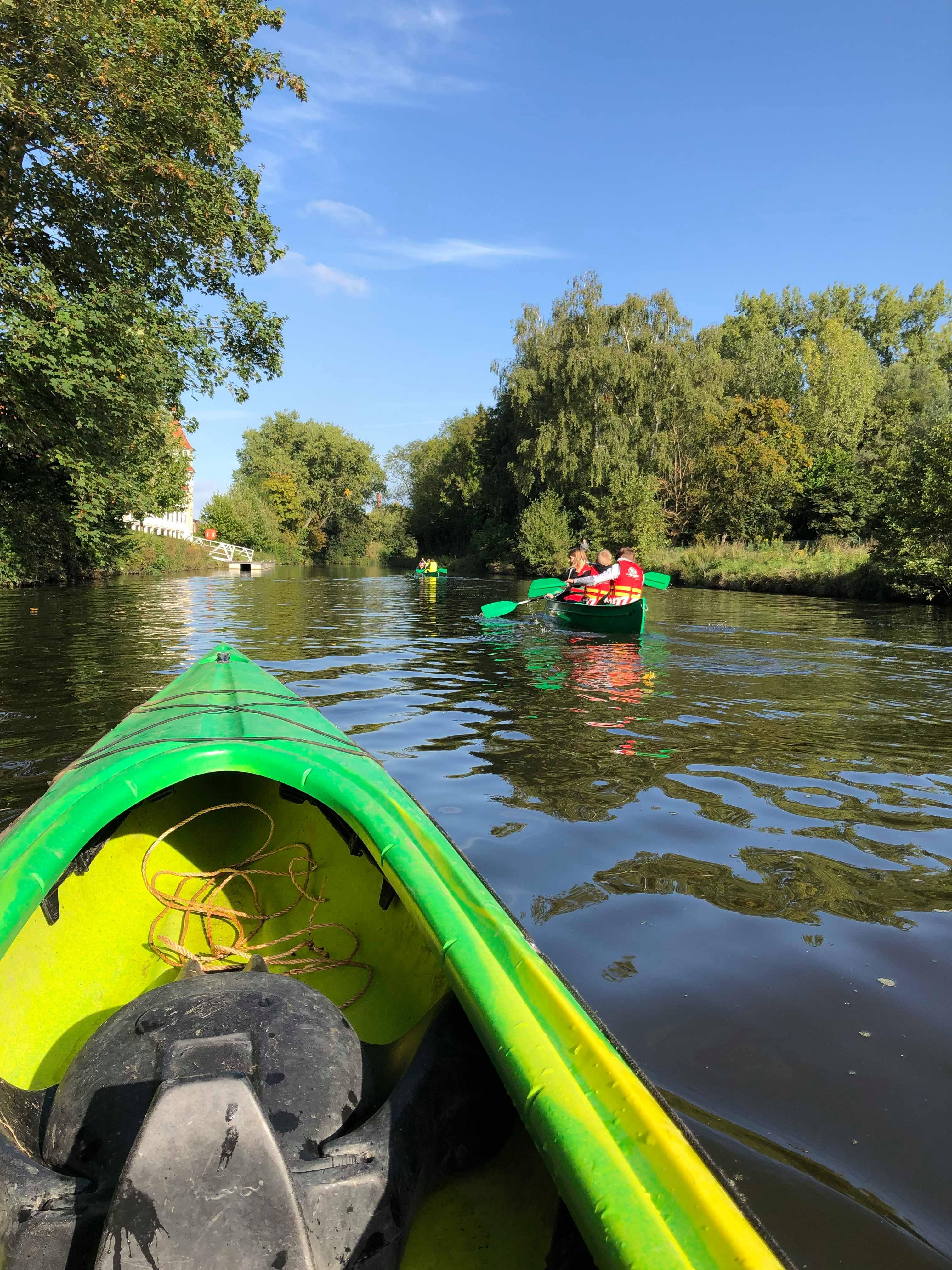 En plus de naviguer vers l'avant, il est également utile de pouvoir changer de direction. Il y a 3 possibilités qui peuvent être utilisées pour le kayak et le canoë. Tout d'abord, vous pouvez changer lentement de direction. Pour ce faire, vous pagayez 2 ou 3 fois le long du même côté. Lorsque vous pagayez à droite, vous allez à gauche et vice versa. Deuxièmement, vous pouvez utiliser un coup d'arc pour effectuer un grand virage. Pour ce faire, avancez d'abord votre corps à fond pour coller la pagaie aussi près du bateau et aussi loin dans l'eau que possible. Ensuite, vous faites un large arc dans l'eau loin du bateau (voir photo). Vous ne tirez que sur le bras inférieur, le bras supérieur n'a aucun effet de poussée ici. Enfin, vous pouvez contre-braquer pour changer de direction. Lors du contre-braquage, la pagaie est amenée dans l'eau de l'arrière vers l'avant. Lorsque vous pagayez à droite, le bateau va à droite et vice versa. L'inconvénient de ce coup est sa grande perte de vitesse.